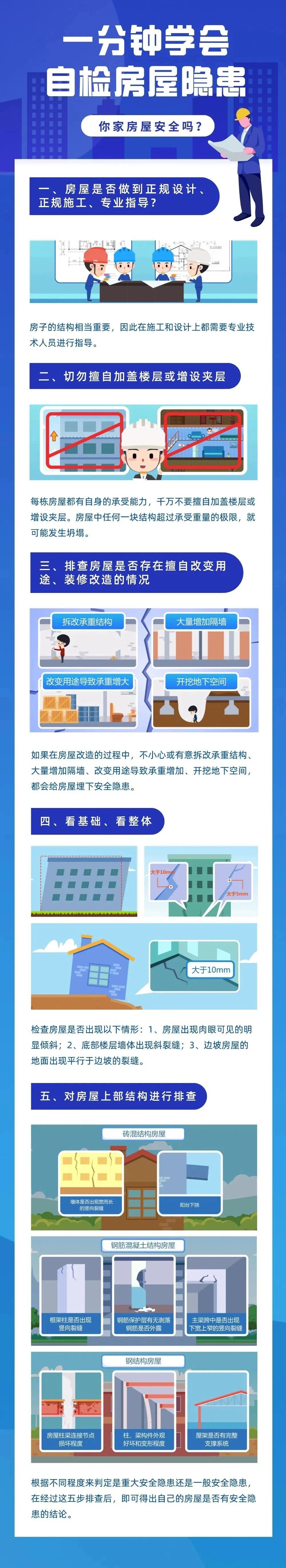 房屋是日常生產(chǎn)生活的重要場所,房屋安全與大家生活品質(zhì)息息相關(guān)。房屋像人一樣,會經(jīng)歷“生、老、病、死”,從出生到死亡,有病要治病,沒病要體檢。平時會出現(xiàn)一些“病害”,如果沒有及時發(fā)現(xiàn)、早日醫(yī)治,慢慢會演變成傾斜、折斷、坍塌等“重癥”乃至“死亡”。關(guān)于房屋安全,這些知識您要及早了解。
