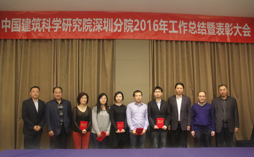 2017年1月12日,“中國(guó)建筑科學(xué)研究院深圳分院2016年工作總結(jié)暨表彰大會(huì)”在深圳召開(kāi)。我院領(lǐng)導(dǎo)班子成員、各部門(mén)負(fù)責(zé)人、專(zhuān)業(yè)總工,以及我院2016年優(yōu)秀經(jīng)營(yíng)管理者、先進(jìn)工作者和優(yōu)秀青年獲得者30余人參加了會(huì)議。總院王清勤副院長(zhǎng)、人事處宋建農(nóng)處長(zhǎng)、工會(huì)戴奇主席和黨辦宋兆康同志應(yīng)邀出席了會(huì)議。會(huì)議由我院黨總支書(shū)記、副院長(zhǎng)何春凱主持。