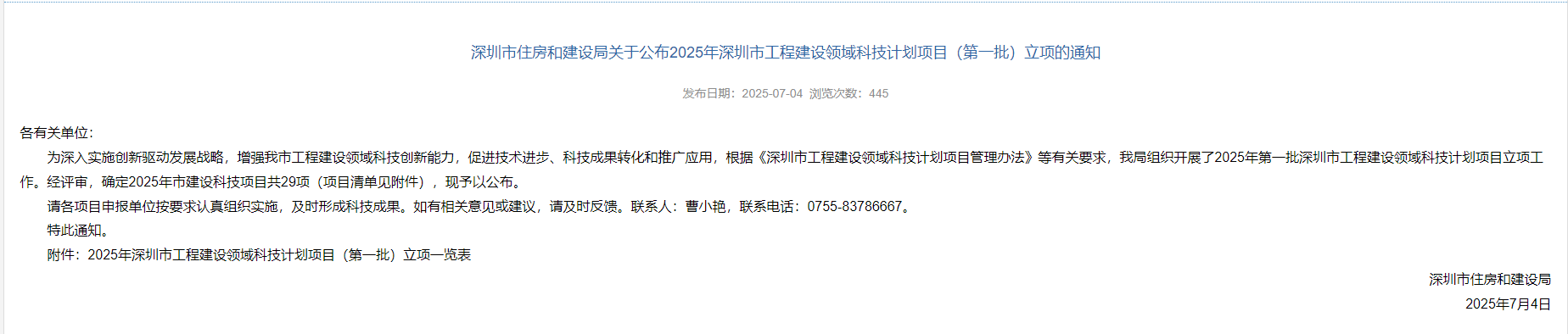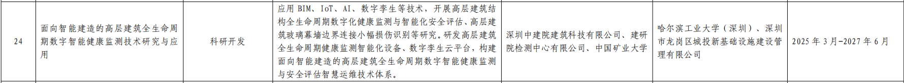 ?由公司牽頭申報(bào)的科技項(xiàng)目《面向智能建造的高層建筑全生命周期數(shù)字智能健康監(jiān)測(cè)技術(shù)研究與應(yīng)用》,成功通過(guò)2025年深圳市工程建設(shè)領(lǐng)域科技計(jì)劃項(xiàng)目(第一批)評(píng)審并獲批立項(xiàng)。