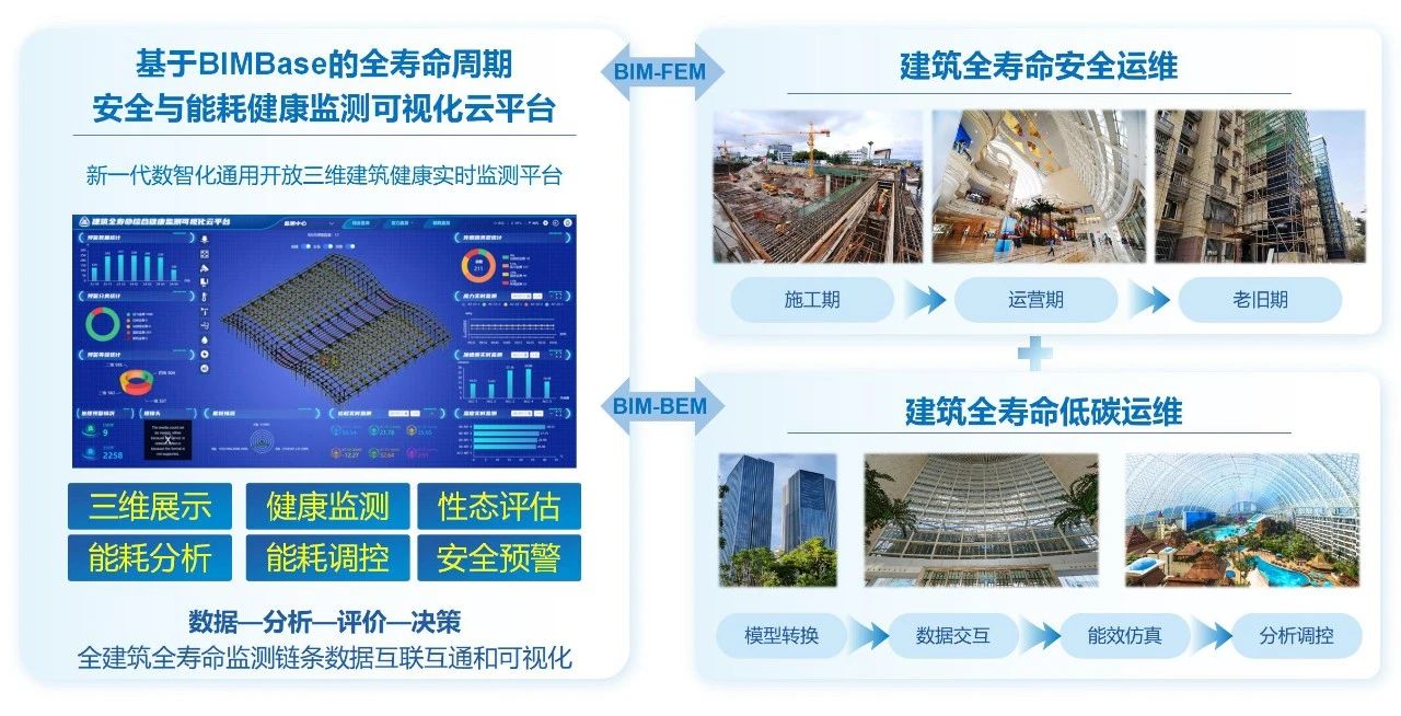?“建筑安全與能耗數(shù)字化集成監(jiān)測(cè)技術(shù)與平臺(tái)”是中國(guó)建研院“建筑領(lǐng)域數(shù)字化技術(shù)應(yīng)用與示范”專(zhuān)項(xiàng)領(lǐng)域的核心技術(shù)成果之一,依托中國(guó)建研院完全自主研發(fā)的BIMBase云平臺(tái)構(gòu)建,融合建筑結(jié)構(gòu)安全監(jiān)測(cè)、建筑能效仿真與調(diào)控等功能模塊,形成了建筑安全與能耗數(shù)字化集成的成套關(guān)鍵技術(shù)體系,實(shí)現(xiàn)監(jiān)測(cè)-預(yù)警-調(diào)控全流程閉環(huán)管理。該成果適用于各類(lèi)新建及既有建筑的結(jié)構(gòu)健康監(jiān)測(cè)與預(yù)警,同時(shí)具備建筑節(jié)能系統(tǒng)的數(shù)字化監(jiān)控、能耗監(jiān)測(cè)與管理能力,可拓展應(yīng)用于陸地與海洋風(fēng)電、核電、光伏等新能源設(shè)施,以及橋梁、隧道等建設(shè)工程領(lǐng)域的安全運(yùn)維。