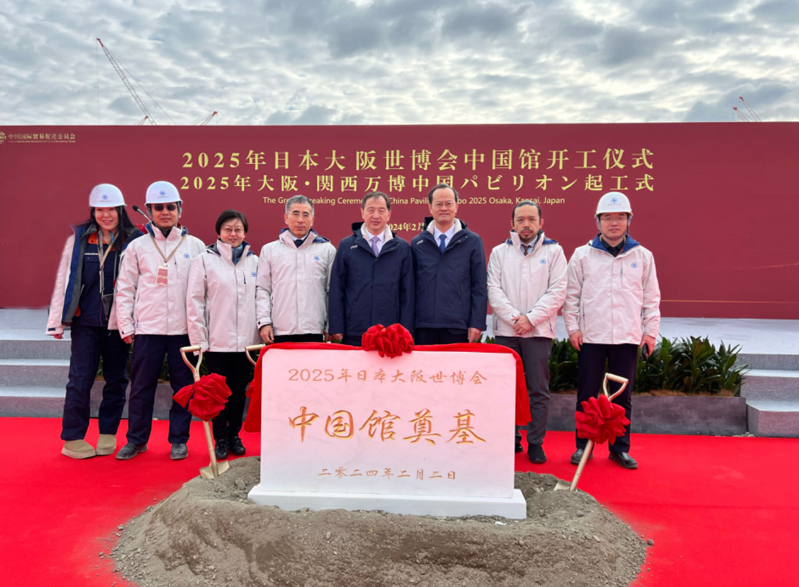 2月2日上午,“2025年日本大阪世博會中國館”開工儀式在大阪濱水夢洲世博園區(qū)隆重舉行。中國貿促會會長任鴻斌,中國駐日本大使吳江浩,中國駐日本大阪總領事薛劍,中國駐日本大使館經(jīng)濟商務公使宋耀明,日本大阪府知事吉村洋文,日本世博協(xié)會事務總長石毛博行,日本外務省關西擔當大使姬野勉,中國建研院黨委書記、董事長王俊,黨委委員、副總經(jīng)理肖從真等出席儀式。