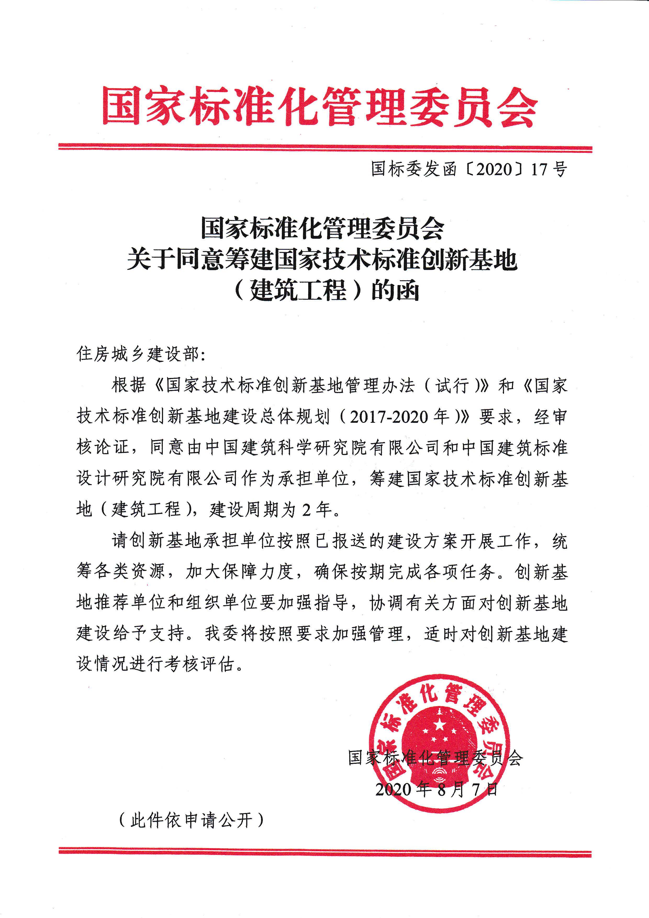 日前,國家標準化管理委員會復函批準,同意由公司協(xié)同有關(guān)單位籌建國家技術(shù)標準創(chuàng)新基地(建筑工程)。這是我國在城鄉(xiāng)建設(shè)領(lǐng)域首次獲得籌建國家級技術(shù)標準創(chuàng)新基地。